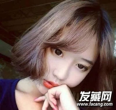 一款韩式短发发型,露出脖子更显瘦,发尾一点烫发设计修颜更时尚,沿着脸颊而下的长刘海更显妩媚感。