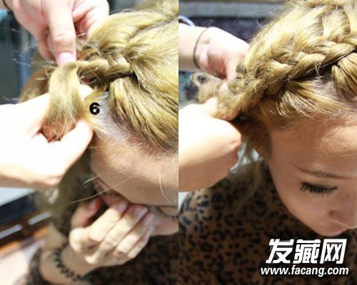7、以此类推,到下面可以取发量多些编入。大致的雏形已经出来了,这时的头发基本分成了3个区域。