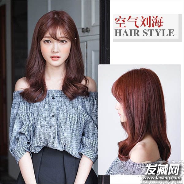 不规则的空气刘海,不需要刻意打理反而带出随意清新的感觉,也是挺特别的。再搭配红棕色的中长卷发,瞬间提升迷人气质哦。