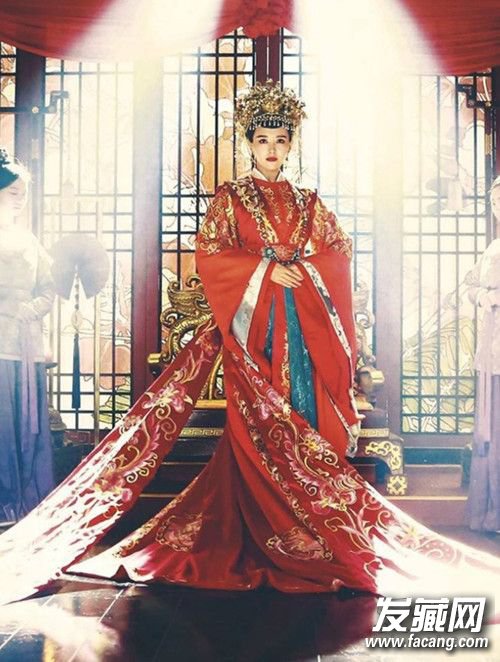 唐嫣剧中大婚造型,一身华服演绎什么教土豪风,服装没什么说的,只是刘海忍不住像吐槽一下,要不是有发饰修饰,看着很的很显老气。