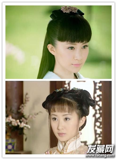 而在《活色生香》里和《孝庄秘史》里都有齐刘海造型,一个齐整,一个轻薄,都显得端庄美丽。