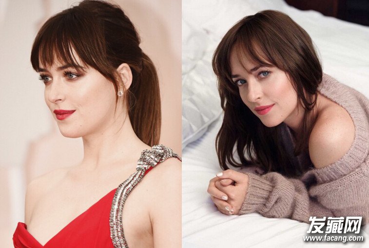 达科塔·约翰逊》》》》》因《五十度灰》一举成名的女星达科塔也是法式刘海的酷爱者。而她本身甜美高贵的气质在刘海发型的衬托下更显个人魅力,不变的发型却能散发出百变的味道,这就是法式刘海的迷人之处喔!