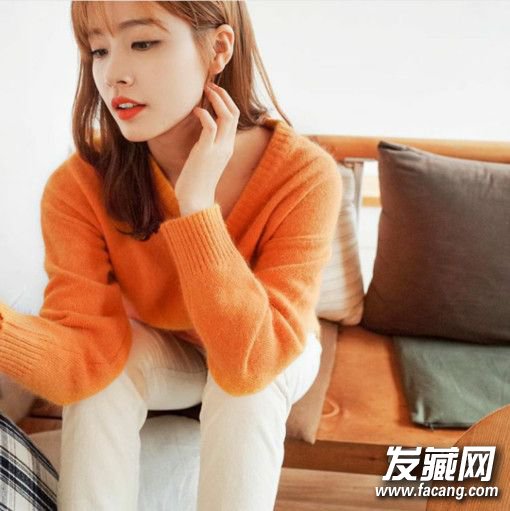 清新养眼的中长发,头发长度刚刚超过肩膀的时候其实是最好打理的,清新棕色发色甜美养眼,搭配橘色毛衣更是暖洋洋的呢。