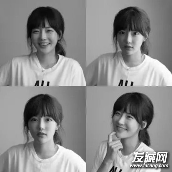 韩国妹子的齐刘海减龄发型,幅度很宽,中间短两边长,完美修饰脸型,肉肉脸一样也适合。