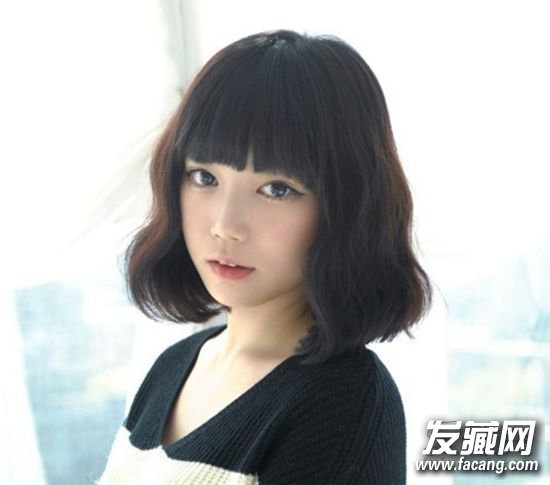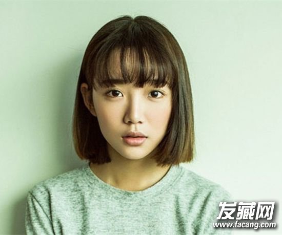 齐刘海妹妹头,短而直的刘海造型配上整齐剪裁的短发,清爽又减龄。
