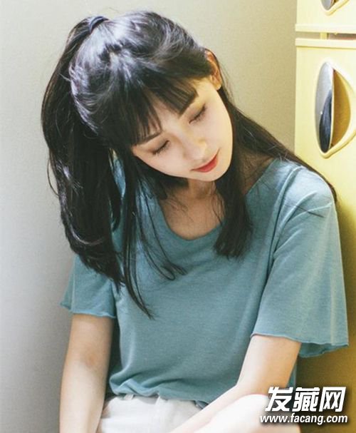 齐刘海长发,齐眉的刘海配过肩长发,也是女生很喜欢的发型,清纯又不老气。