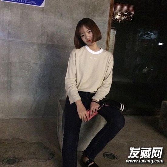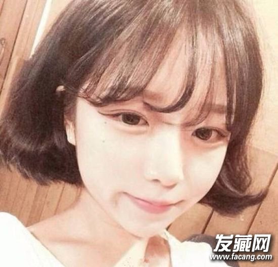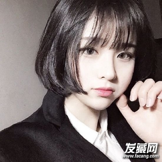 齐刘海短发造型,短BOBO头加刘海甜美又减龄,秒变巴掌脸凸显萝莉气质。