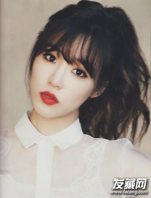 长度快要及眼的齐刘海配大长发甜美清纯,扎头发的头发的时候更是少女感十足。