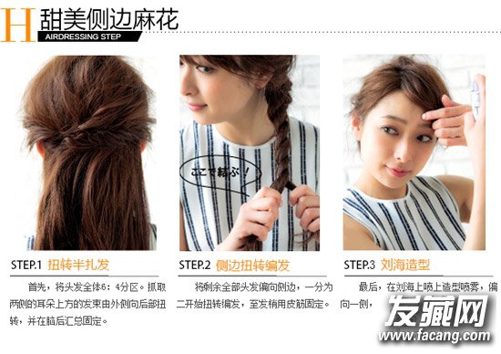步骤1-3。这样的两股辫扭转编发可以让编发呈现不一样的效果,更加俏皮可爱。