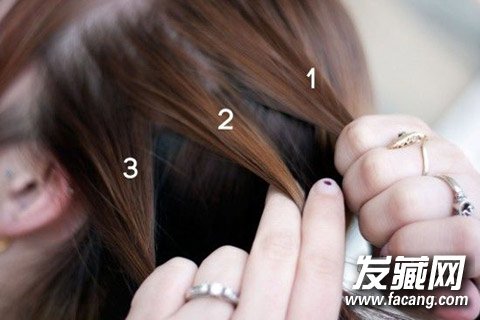 首先,将耳朵上方的头发分成三份。