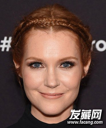 1971年生人的Darby Stanchfield今年也已经44岁了,她的裸妆搭配暖棕色系的秀发、眉眼妆非常耐看。她的盘发是用头顶两侧各梳一根小麻花辫来逆向固定住,就像发带一样好精致,利索又清凉的LOOK太适合这个闷热的伏天了!