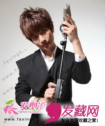 栗色的染发更具潮流感,更显得阳光有型,蓬松的发丝,空气感十足,显得动感又活力,整齐的刘海,凸显出了一双浓眉大眼,释放着十足的电力。