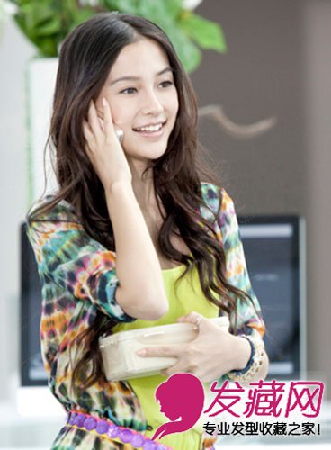 拥有完美瓜子脸的Angelababy选择中分发型就最能衬托她姣好的脸容了,大波浪的弧度十分有魅力更具女神范。