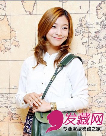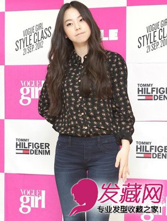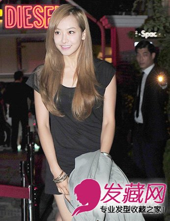 侧分的刘海自然也将脸型修饰。而亚麻色的长碎发直发造型制造出飘逸的造型感,令其气质度也是瞬间飙升。