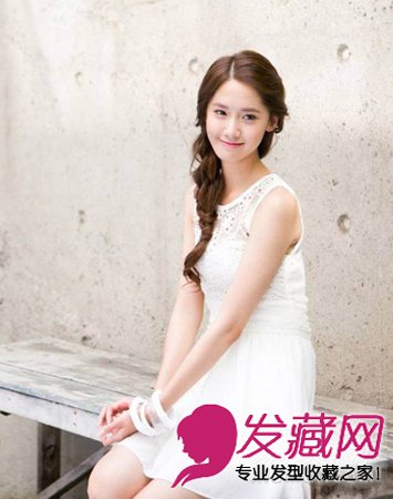 侧分的编发斜斜的放到一侧,显得非常的清新美丽,编发的发辫还心机的用头发挡住了皮筋,这可是今天大热的编发发型,显的允儿即清纯又美丽
