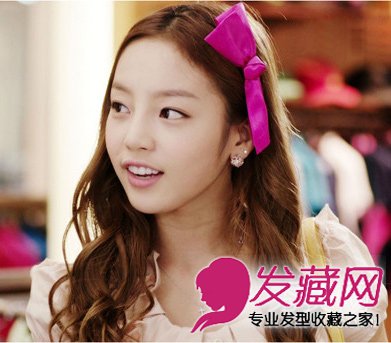 非常可爱的荷拉,一款栗色的中分长卷发,配上甜美的蝴蝶结发饰,真的是超级甜美