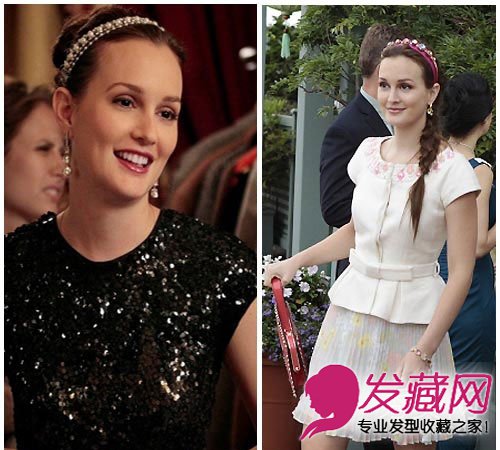 在第六季中,Blair的发型越发的精致,有许多盘发的发型。配上精美的发饰,真的非常有名媛范。