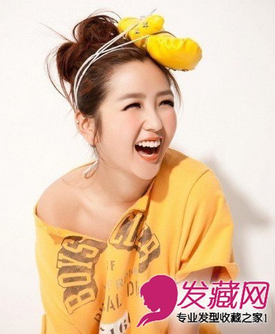 蓬松的花苞头加上甜美可爱的发饰后,减龄十足。也为其风格华丽转变。