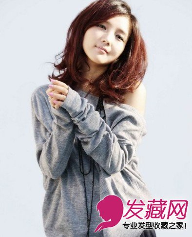 红棕色的染发提升了发型的质感。层次的不规则烫发将中卷发制造出丰盈感。