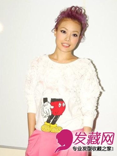 偏紫色的发色配上相同色调的裤子,很是协调
