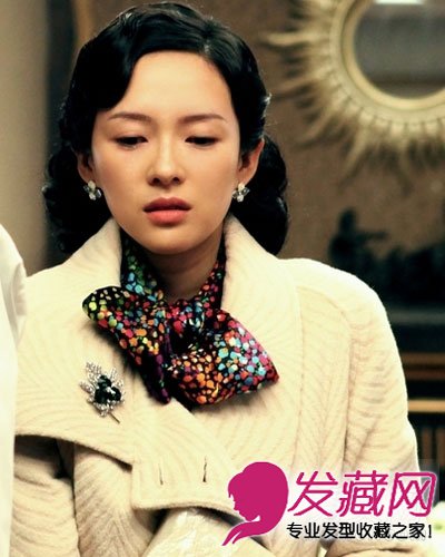 前额大曲线刘海,干净利落,让整体五官线条更加的柔美。头后的凌乱卷发发髻似乎在跟剧中扑朔迷离的事件拉近乎,都同样是错综复杂。旧上海的夕阳色彩给章子怡又增添了古韵气质,东方美绝妙演绎