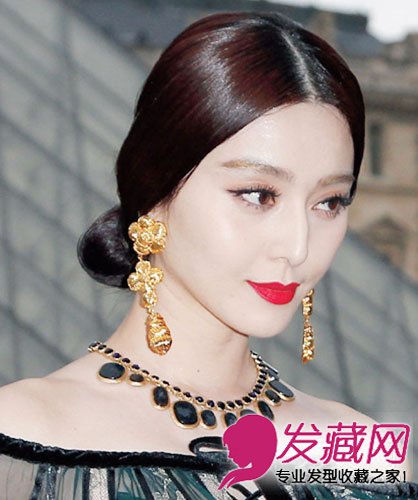 范爷在征战巴黎的时候,总是喜欢且特别适合展现复古东方风情,后盘的发髻干净利落又温婉可人,特别有王室风范。