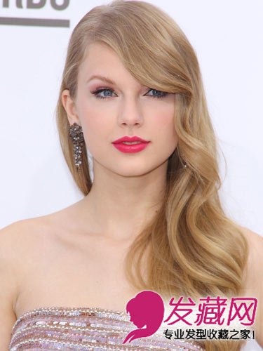 螺旋波浪以及柔软的侧边分发型,让泰勒.斯威夫特头发看起来既有些复古意味,又妩媚无比。