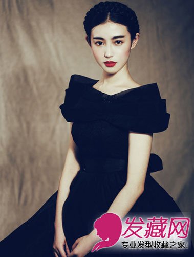 张辛苑的整个造型都非常复古,特别是发型是点睛之笔,两边的麻花辫绕在头顶,像发带一样很是大气