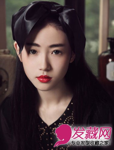 简单的长直发配上硕大的黑色蝴蝶结有着不一样的风情