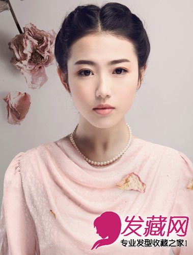 头发在后盘起,重点是头顶要做出空气感使它鼓起,这样才不会呆板
