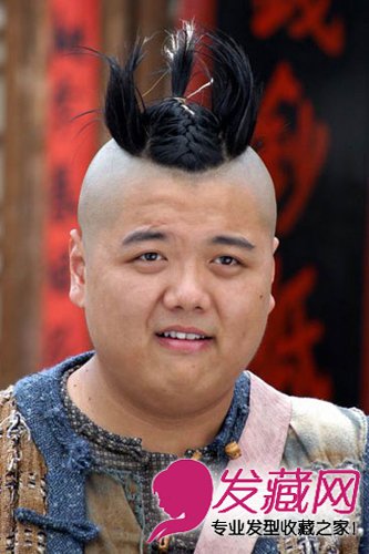 将周围的头发都剃光,只留出头顶的一小束头发。将这束头发中间的头发编成辫子,两侧则用定型产品进行竖立的定型,这款明星雷人发型可算是将雷人发挥到了极致。或许,你可以将之称之为另类。