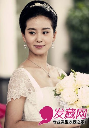 高贵的新娘造型,头发高高盘起配上钻石的发卡与之相呼应,真的是清纯而又不失优雅。