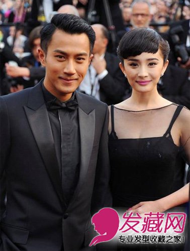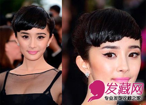 复古参差刘海儿盘发即使做过削骨手术,杨幂的下巴两侧依然略成方形,盘发虽然大气优雅,但势必会暴露脸型的缺陷。这款模仿奥黛丽赫本的参差刘海儿盘发就起到了很好的修颜效果,额前厚厚的假刘海将人们的视线焦点上移,忽略了杨小姐脸下部的畸形。
