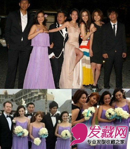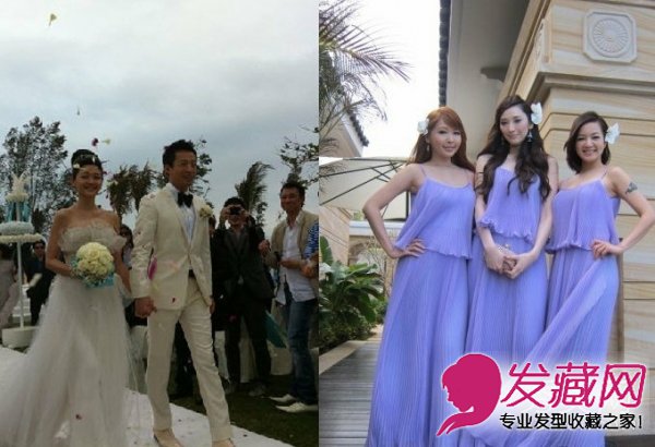 大S号称的低调婚礼还是一不小心轰动了,姐妹团里请到了吴佩慈、阿雅、Makiyo担当伴娘,紫色长裙相当有浪漫色彩,就连一向搞怪的阿雅也女人味十足。尤其是,她们各自头上插的鲜花头饰,看起来更具风情。