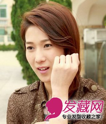 刘海自然向外翻的侧边发,气质妩媚,栗色的染发发色,显低调优雅。
