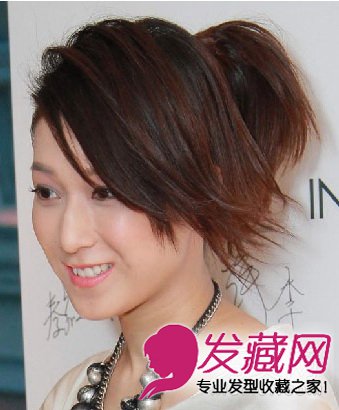 时尚的马尾,上面是凌乱蓬松的设计,后面是简单的一个马尾束发,呈现出简约型的都市女郎风范。