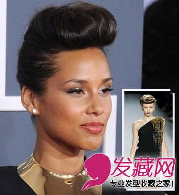 高卷发型(以法国de Pompadour夫性命名)不仅是Alicia Keys在格莱美颁奖仪式上首次登台的造型,也泛起在Jenny Packham秀场中。设计师因英国公爵夫人Catherine穿着她的作品出席皇家运动而声名远播,这款发型优雅漂亮,倒是十分适合派对和晚宴的正式场所。