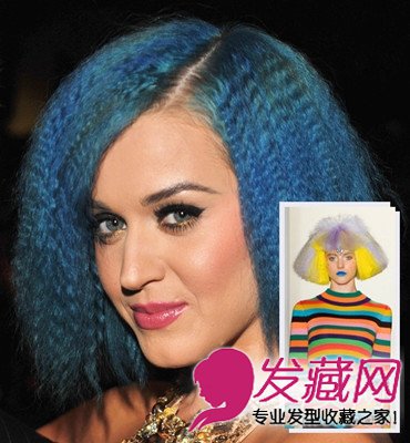 Katy Perry以电蓝色头生长现出自我,在Jeremy Scott秀场上也可以看到模特们带着à la Rainbow Brite的彩色波波头卷发。头发的造型和纹理都十分相似,谁知道Katy是不是也会实验一下多种颜色mix在一起呢!
