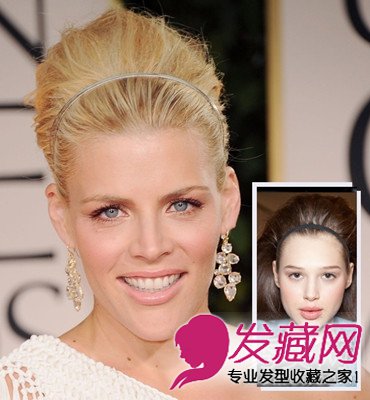今年的金球奖颁奖仪式上,Busy Philipps(带着她著名的BFF)用一个精致的发箍压住头顶蓬松兴起的发包,和Carolina Herrera的秀场造型很是相似。