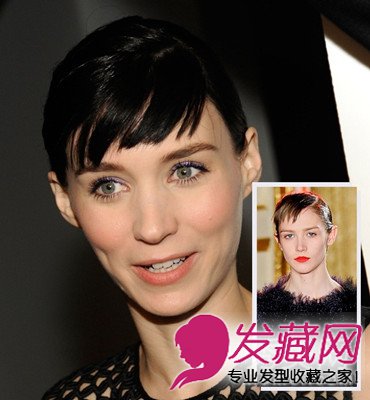 自从出演《龙纹身的女孩》后,Rooney Mara将短刘海作为她的气势派头标识。Thakoon的模特们也演绎了乱七八糟的迷你刘海,将梳好的马尾向前牢固起来营造出一个视觉假象。