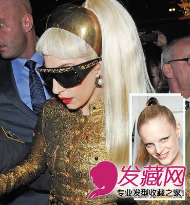 Jason Wu秀场上用皮革绑出的高马尾辫儿引发了Lady Gaga的灵感,设计出了最近这款类似街机游戏和小众影戏中的功夫明星造型,她以一头铂金色的假发向80后期的Madonna表现致敬。
