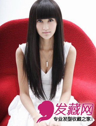 长发直发造型打造出清新的玉人形象,整齐的刘海彰显出乖乖女的个性,搭配一身白色长裙更显清纯的诱惑美。