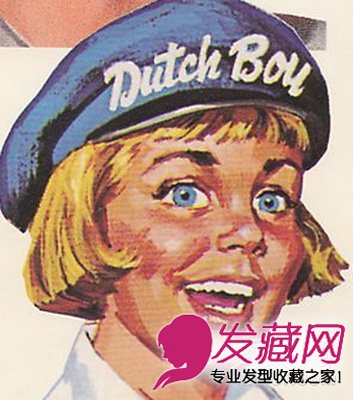 在20世纪早期,刘海被看作是孩子们特有的。这张著名修建品牌荷兰小子(The Dutchboy bob)的广告纸上女孩梳着齐耳短发,带着一个水师蓝的帽子,正是其时孩童们最盛行的发型。这款发型的刘海也是齐平的而且发量富足。