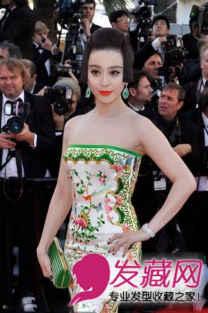 在戛纳红毯上打出复古头炮的范爷,古风十足,一身翠瓷曳地长裙已然很是穿越,更别说是百分百复刻隋唐时期宫廷仕女的结状发髻。隋唐仕女发髻“发薄难梳,愁多易结。”不外范爷倒是把这么我见犹怜的发髻驾驭得个性十足,刘海全然向后正好凸显出范冰冰够立体的五官,这种国字脸MM遇到了只能哭的平行直线侧发片,遇到了锥子脸女王,却愈发让范冰冰显得娇俏妩媚了。