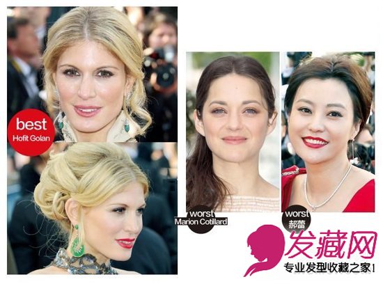 Hofit Golan两次登场均选择了海浪中分发髻搭配女性化的裙装造型,云云“坚决”,在一众争奇斗艳的戛纳女明星中并不多见,可见Hofit Golan对此款造型是有何等的万无一失。确实,影戏节时代的她简直就犹如普罗旺斯的花海一瞬间开放般漂亮绚丽,美到心都化了!视线转向Marion Cotillard,刚刚计划融化的心连忙就恢复了正常,这随意的就像邻人家宅女的发型着实是毫无精神、死气沉沉。再看郝蕾,噢!NO!我们的心瞬间冰冻三尺!过于随便的发型着实欠缺美感。性格随性,但也要看场所啊!