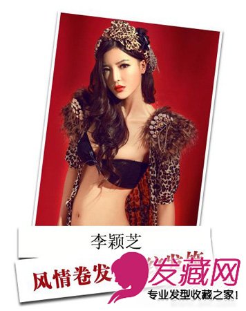 将大卷发放于一侧肩上,大卷很自然,很松软,带上豹纹的发饰,李颖芝化身了豹女郎,性感至极。