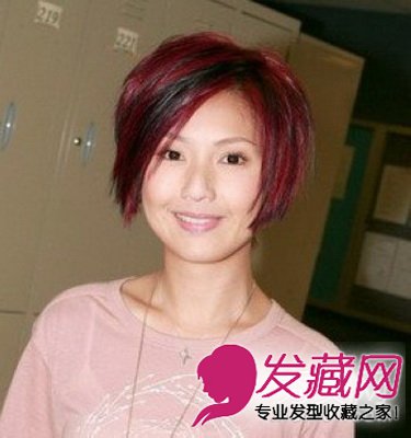 很亮眼的酒红色发色在公然场所很有“聚焦”效应,经心打理的斜分刘海很好的修饰了杨千嬅的圆嘟嘟的大脸。