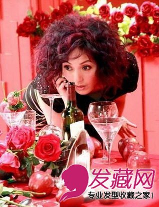 整款发型使用夸张的空气烫发手艺,蓬松的发丝展现了爆炸头的效果,酒红色的挑染不仅使肤色变得越发白皙,而且爆炸头的短发烫发效果凸显了杨千嬅鬼灵精怪俏皮的气势派头。
