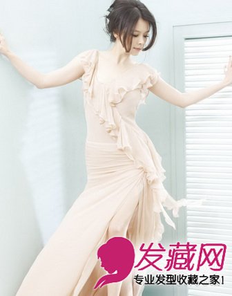 典雅淑女的盘发发型,将卷发盘成发髻,两侧刘海不仅修饰脸型,还增添了整体发型饿随性浪漫。很是适合出席party的发型。