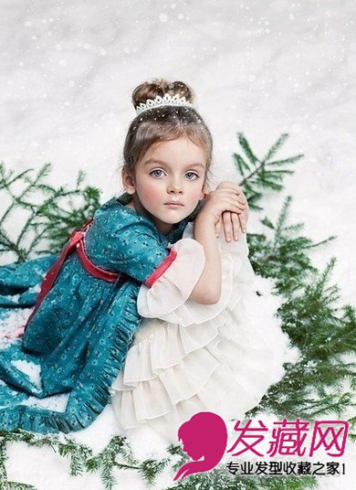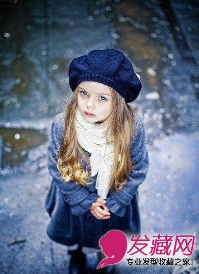 中分卷发,戴上一顶绒线帽,活脱脱是一个雪地里的小天使。